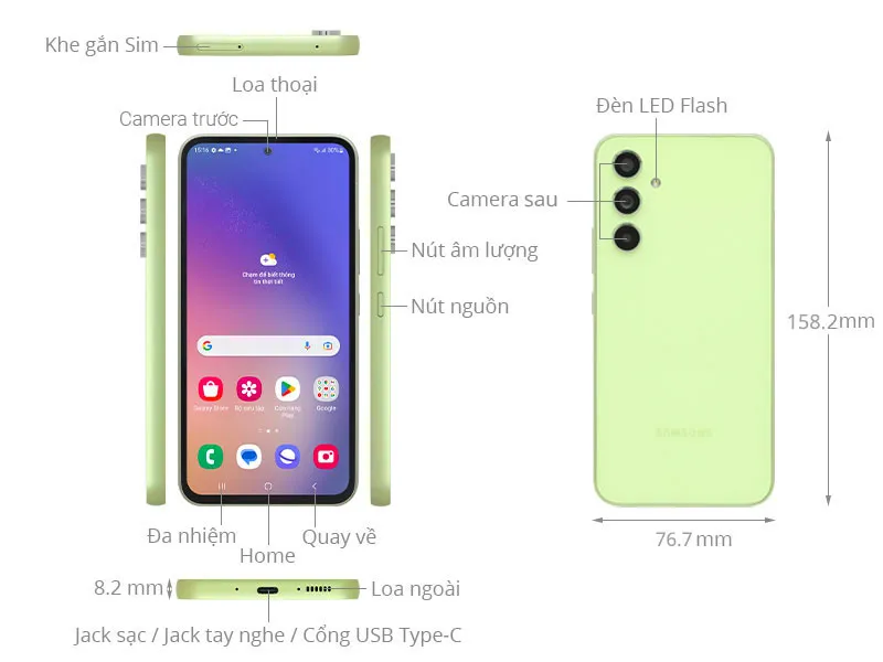Tiêu chuẩn kháng nước và bụi IP67 của Galaxy A54 mang đến cho mình sự yên tâm hơn trong việc sử dụng hằng ngày. Theo như nhà sản xuất, chiếc điện thoại này có khả năng kháng nước ở độ sâu tối đa 1 mét trong thời gian lên đến 30 phút. Điều này có nghĩa là nếu vô tình rơi xuống bể bơi hoặc bồn rửa, mình không cần phải lo lắng quá nhiều về việc máy sẽ bị hỏng do vào nước.