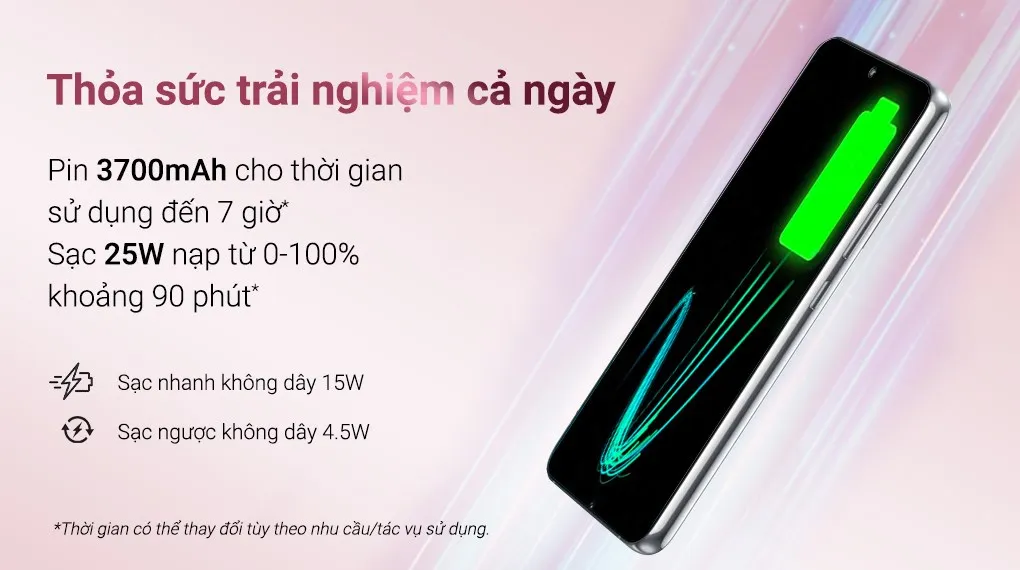 Vì được thiết kế mỏng hơn nên chiếc điện thoại Samsung này có phần dung lượng pin hơi khiêm tốn chỉ 3700 mAh nếu so với Galaxy S21 là 4000 mAh. Galaxy S22 hỗ trợ công nghệ sạc nhanh 25 W giúp sạc đầy thiết bị nhanh chóng, đáp ứng tốt nhu cầu sử dụng cường độ cao của bạn.